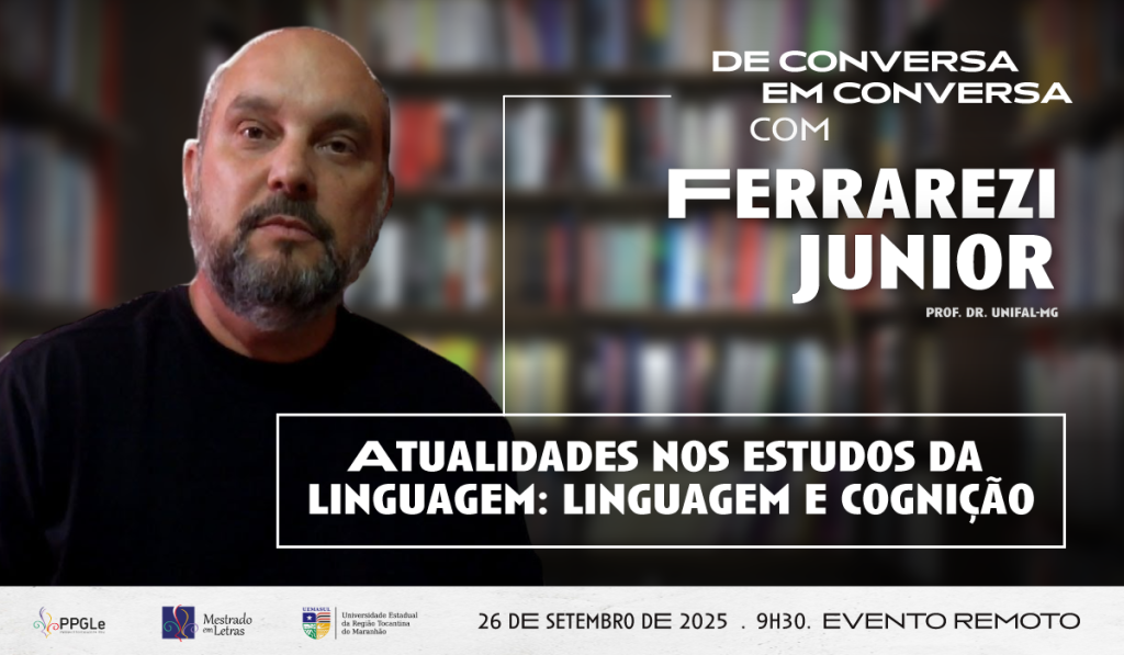 O Programa de Pós-Graduação em Letras da UEMASUL promove, nesta sexta-feira (26), às 9h30, mais uma edição do “De conversa em conversa”, projeto que reúne professores, estudantes e pesquisadores em debates sobre temas atuais no campo das Letras. O convidado será o professor Ferrarezi Junior, da Universidade Federal de Alfenas (UNIFAL-MG), que vai abordar o tema “Atualidades nos estudos da linguagem: linguagem e cognição”.